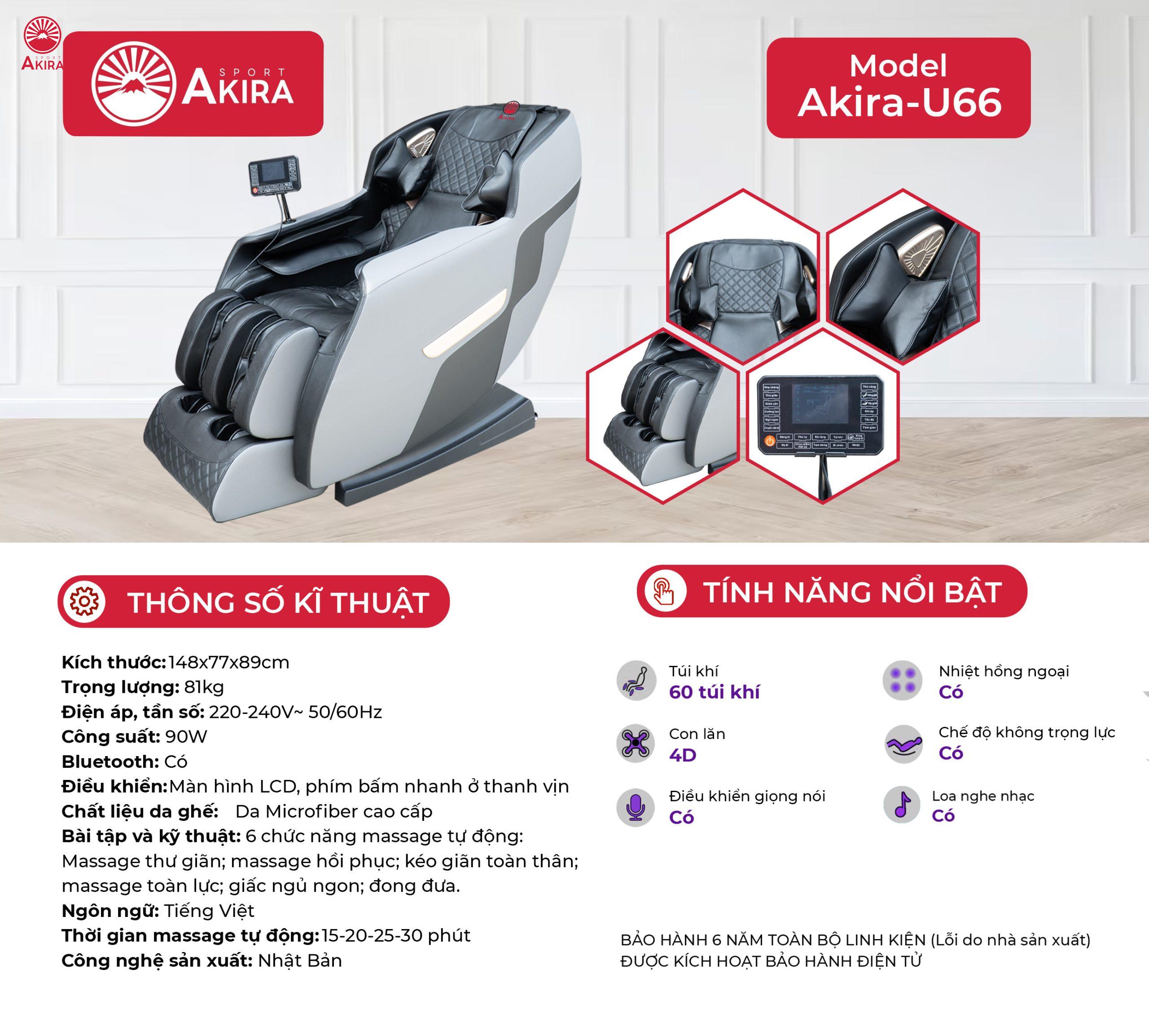 Ghế massage AKIRA – AU66 là dòng sản phẩm ghế massage cao cấp, tích hợp những công nghệ massage tiên tiến hàng đầu hiện nay, sản phẩm được giả lập đầy đủ như một chuyên viên massage chuyên nghiệp tại nhà để chăm sóc sức khỏe cả gia đình của bạn. Đặc biệt, mẫu ghế massage AKIRA – AU66 này được coi là phân khúc giá rẻ cho dòng bi lăn di chuyển cao cấp, phù hợp với mọi gia đình.