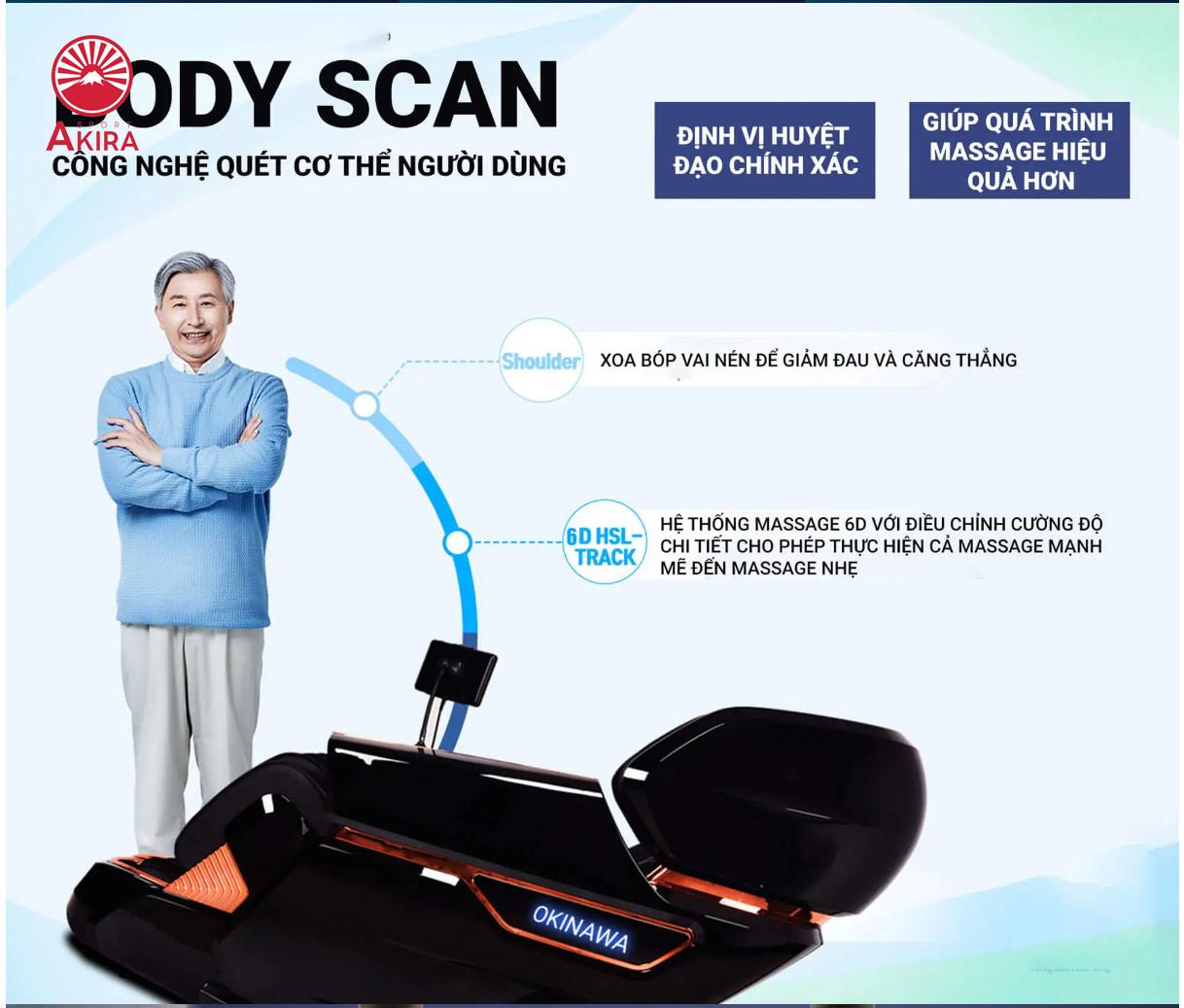 Công nghệ Body scan quét toàn bộ cơ thể người dùng giúp xác định huyệt vị, huyệt đạo chính xác đến từng milimet, tác động đúng các điểm đau nhức, hỗ trợ giảm đau nhức, giúp quá trình massage hiệu quả hơn bao giờ hết.