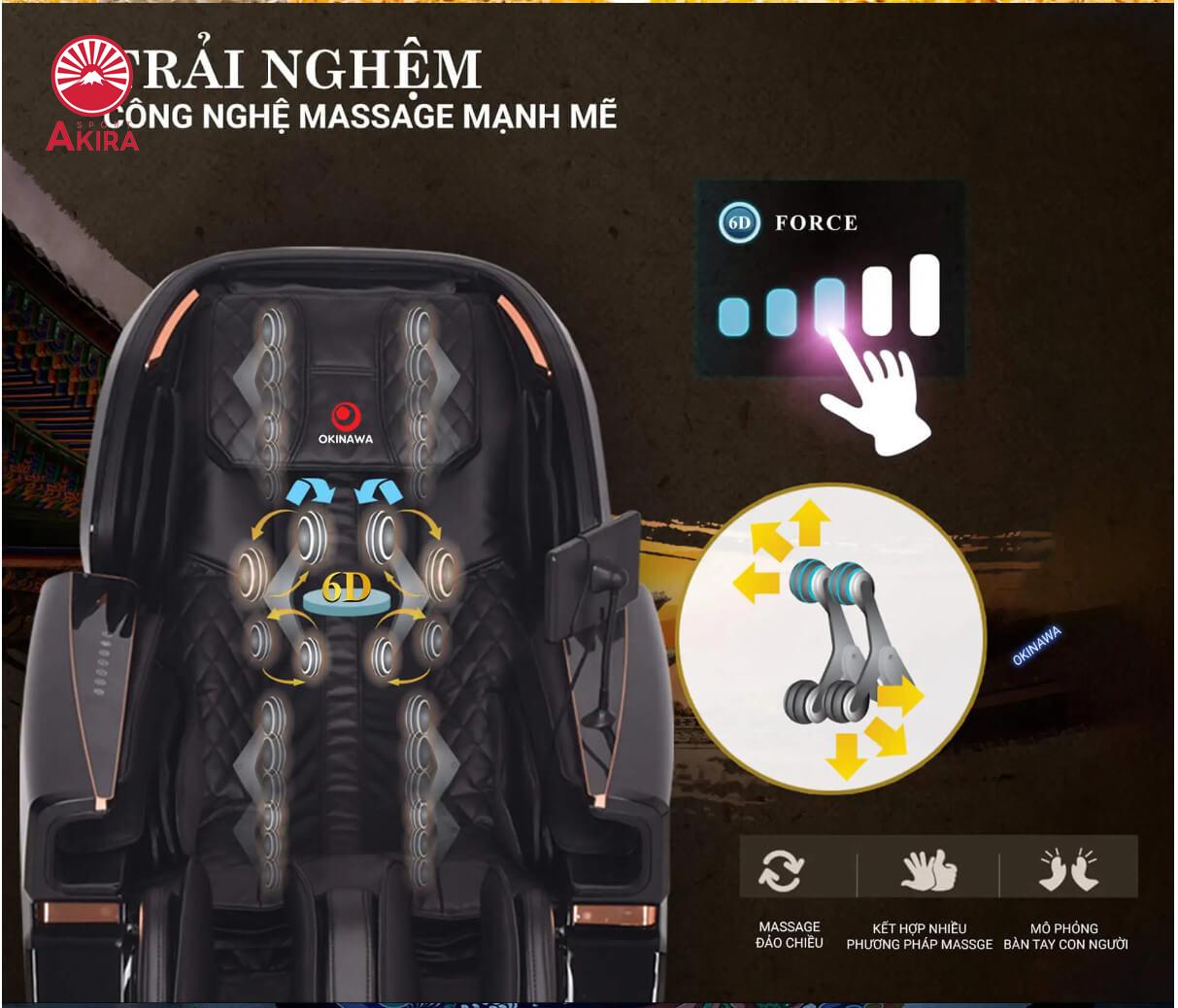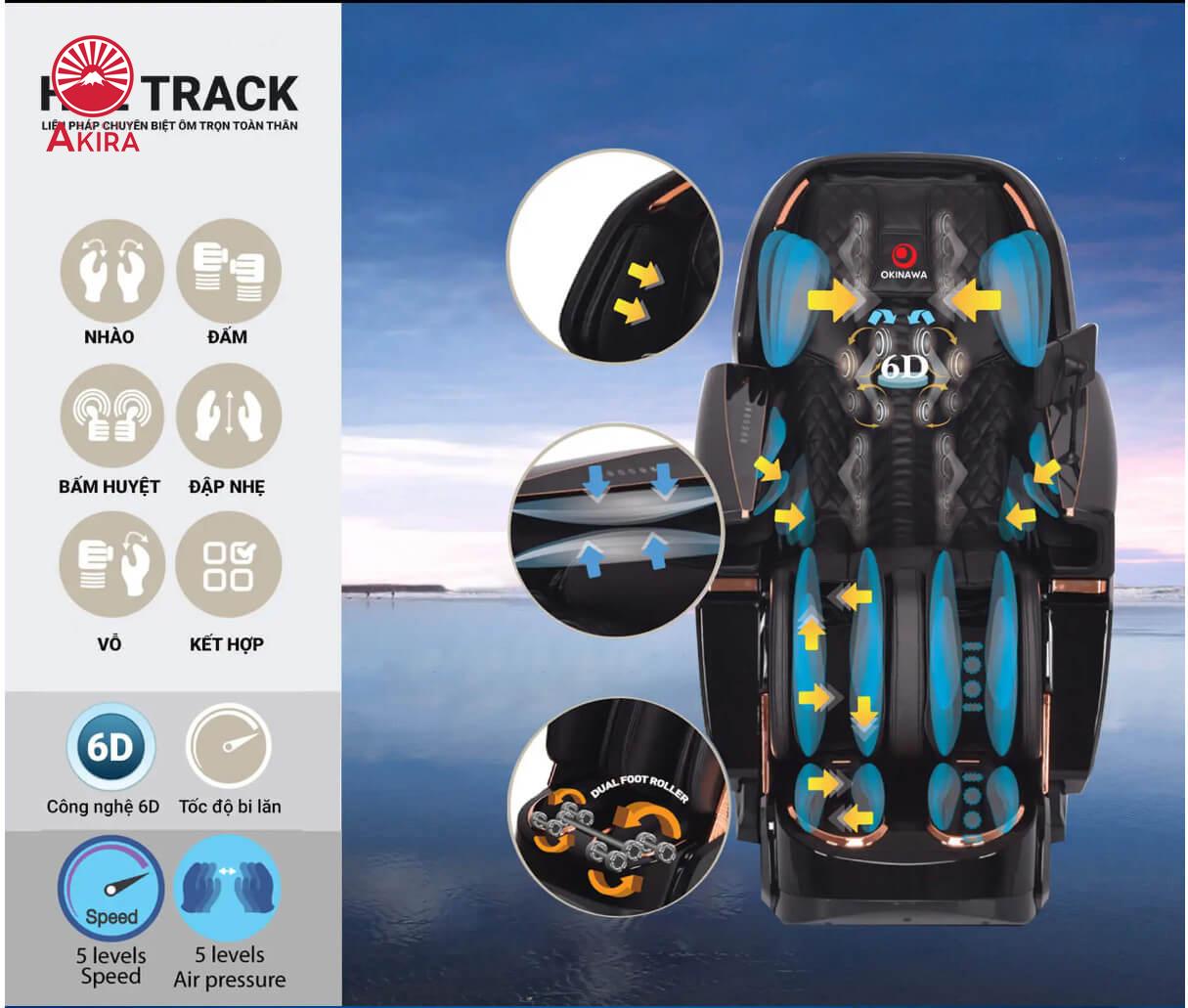 Ghế massage AKIRA Majestic Monarch OS 500 được các kỹ sư trang bị công nghệ tiên tiến và hiện đại như đường ray HSL, 24 bài tập tự động, công nghệ massage 6D hiện đại nhất, chế độ lùi tường tự động, màn hình LCD cảm ứng, da PU cao cấp, chế độ body scan được đánh giá là sản phẩm chăm sóc sức khỏe tại nhà ưu Việt nhất hiện nay.