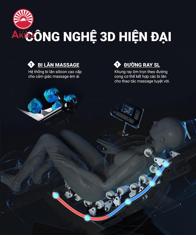 Hệ thống bi lăn cao cấp bọc silicon êm ái, chuyển động nhịp nhàng, linh hoạt kết hợp với các bài massage chuyên nghiệp như chuyên gia thực thụ giúp tác động sâu một cách chân thực đến từng bộ phận cơ thể. Những mệt mỏi, đau nhức, đau cơ xương sẽ được giảm đi nhanh chóng. Giúp hồi phục sức khỏe tốt hơn. Việc chuyển động xoay, ấn của bi lăn còn tác động sâu vào từng huyệt vị giúp đả thông kinh mạch, lưu thông tuần hoàn máu.
