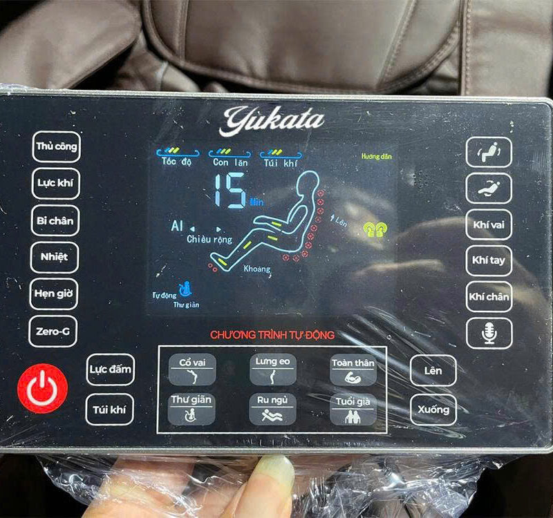 Ghế massage toàn thân Yukata Y- 899 có bộ điều khiển thông minh, có 3 cách để người dùng có thể sử dụng mẫu ghế này bao gồm: Thao tác trên màn hình cảm ứng LCD với các bút chạm bằng tiếng Việt, tùy chỉnh nhanh chóng bằng hệ thống phím bấm nhanh trên tay ghế, hoặc có thể tùy chỉnh rảnh tay với công nghệ điều khiển bằng giọng nói siêu nhạy. Người dùng chỉ cần đọc các câu lệnh được thiết lập sẵn, AI89 sẽ ngay lập tức phản hồi và đáp ứng các yêu cầu.