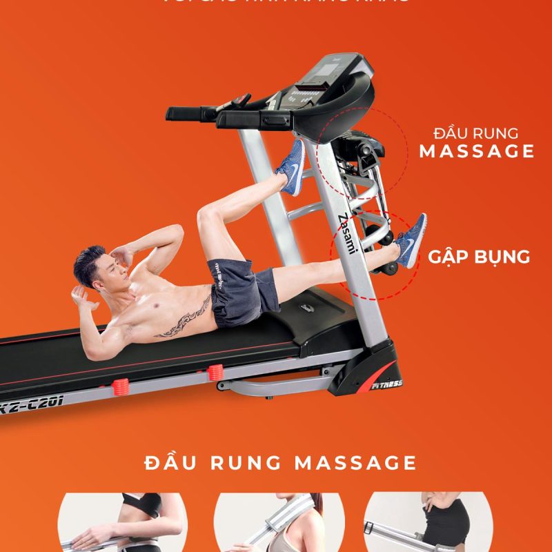 Đừng quên rằng máy chạy bộ zasami Fly là một thiết bị đa năng, ngoài chạy bạn còn có thể sử dụng thanh gập bụng và đai massage giúp đánh tan mỡ thừa hiệu quả.